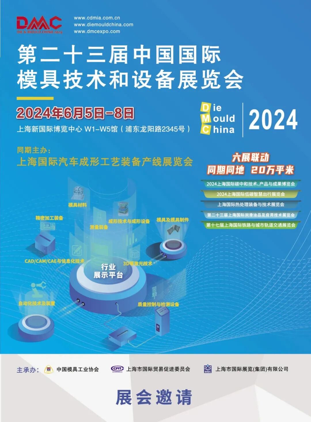 第二十三届中国国际模具技术和设备展览会(DMC2024)将移师上海新国际博览中心(W1-W5)于2024年6月5日-8日盛大举办!