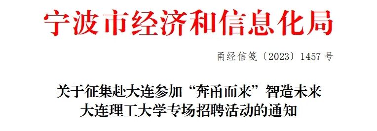 现转发宁波市经济和信息化局《关于征集赴大连参加“奔甬而来”智造未来大连理工大学专场招聘活动的通知》,请有意向企业积极参加,具体见文件。