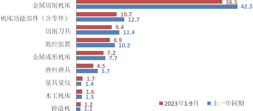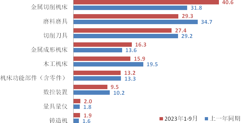 2023年1-9月,协会重点联系企业中金属切削机床营业收入同比增长1.8%,较上半年回落1.9个百分点;金属成形机床同比增长17.9%,较上半年扩大2.6个百分点。
