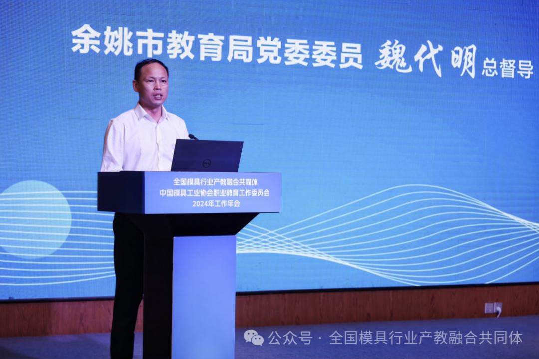 5月20-21日,全国模具行业产教融合共同体暨中国模具工业协会职业教育工作委员会2024年工作年会在浙江余姚顺利召开,会议由全国模具行业产教融合共同体和中国模具工业协会职业教育工作委员会主办,宁波职业技术学院承办,山东豪迈机械科技股份有限公司、华中科技大学、余姚市科学技术局、余姚市工业园区管委会、宁波模具行业协会、余姚模具工业协会、余姚技师学院和舜宇集团有限公司等共同承办。余姚市科学技术局党组书记褚仲玖,余姚市教育局党委委员、总督导魏代明,余姚市科学技术局副局长夏建勇,中国模具工业协会常务副会长兼秘书长秦珂,中国模具工业协会职业教育工作委员会主任戴裕崴,山东豪迈机械科技股份有限公司董事长单既强,华中科技大学教授黄志高,宁波职业技术学院党委委员、副校长杨林生,全国模具产教融合共同体秘书长王正才等出席年会,年会由共同体副理事长单位湖南财经工业职业技术学院校长胡智清和山东豪迈数控机床有限公司教育事业总监王同伟分别主持。来自全国各地的90余家副理事长单位和理事单位百余名代表参加年会。
