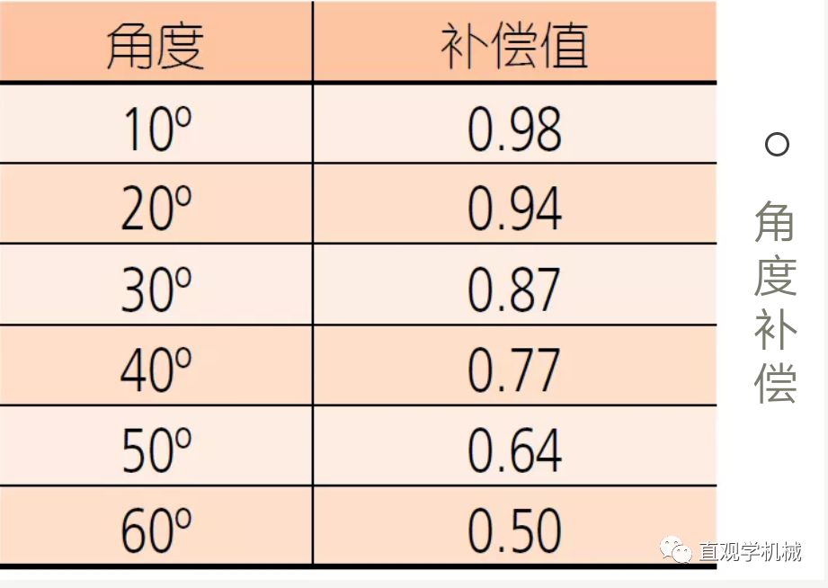 θ=10° 时,0.002mm*0.98=0.00196mm;
