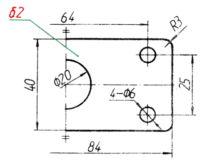 标注板状零件的尺寸时,可如例图中所示,在厚度的尺寸数字上方加注符号“8”。