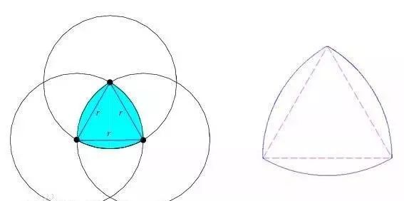 下图是此类三角形旋转的一个例子,因为这个特点,该类三角形可用于做运输的轮子,搬东西稳定(但由于制作技术要求高,边角不耐磨等原因不常用)。