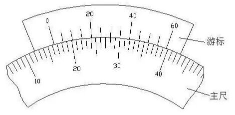 万能角度尺的读数方法和游标卡尺相同,先读出游标零线前的角度是几度,再从游标上读出角度“分”的数值,两者相加就是被测零件的角度数值。