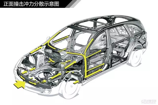 同样是为了保护驾乘室中的人员,在汽车受到撞击时,利用特殊设计的车身,将撞击力分散、转移,从而减少传递到驾乘室的撞击力,达到保护车内乘员的目的。