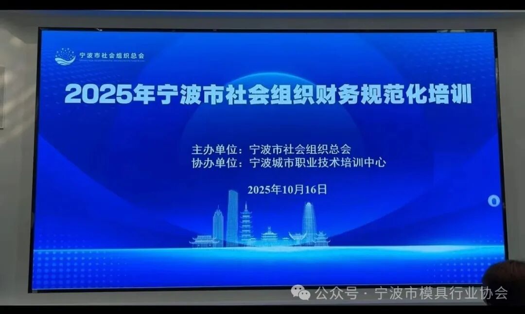 2025年10月16日下午,由宁波市社会组织总会主办的“2025年宁波市社会组织财务规范化培训”在宁波(鄞州)社会组织创新园举行,本次培训采用线上线下相结合的方式。宁波市模具行业协会、宁波市机床设备行业协会组织财务人员及秘书处通过线上方式全程参加培训。