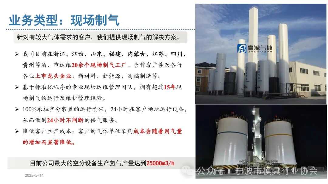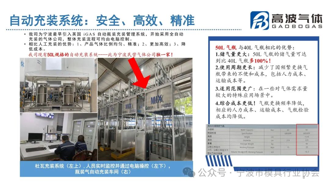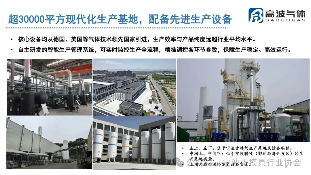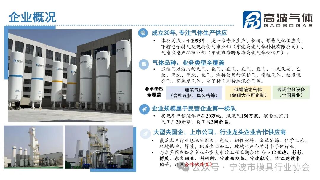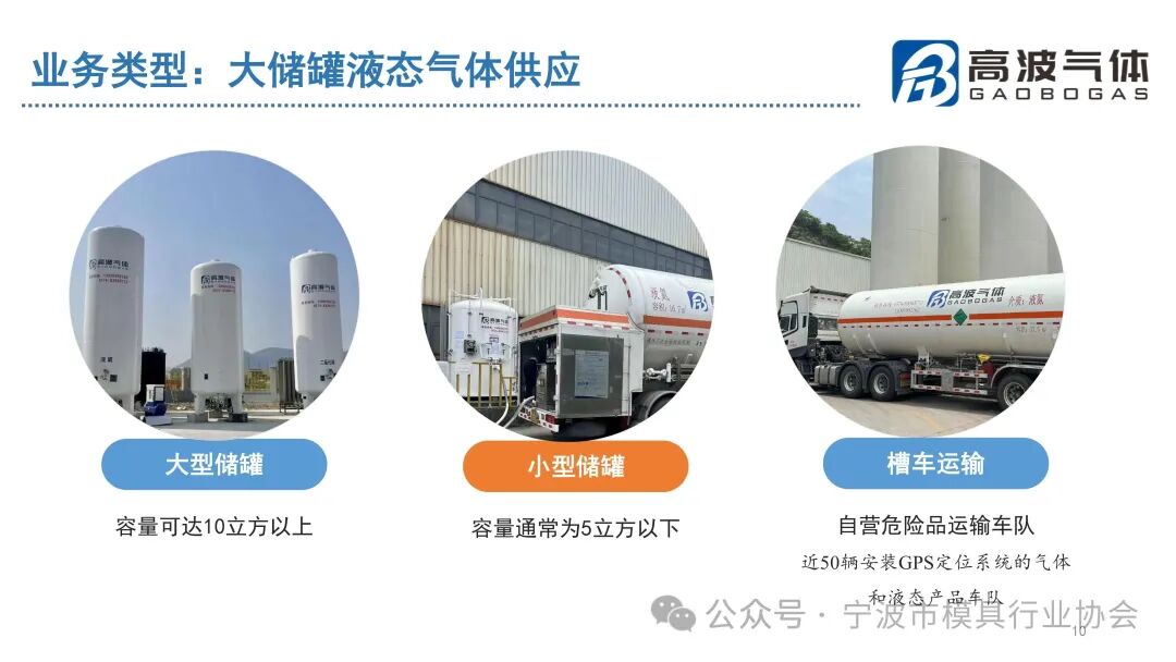 作为深耕宁波本地近30年的气体行业企业,拥有充足的氧、氮等工业气体产能,可提供高纯气体、混合气、基础工业气体等全品类产品,以及瓶装、集装格、储罐租赁、现场制气等多元供气模式,是宁波模具机床行业的气体配套服务商,产品与服务适配模具机床生产全工艺链需求。