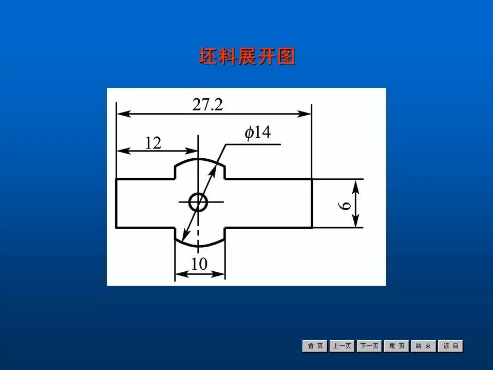 (3) 展开图 展开图依据加工图,对各段弯曲长度按顺序标明,以便于检查。
