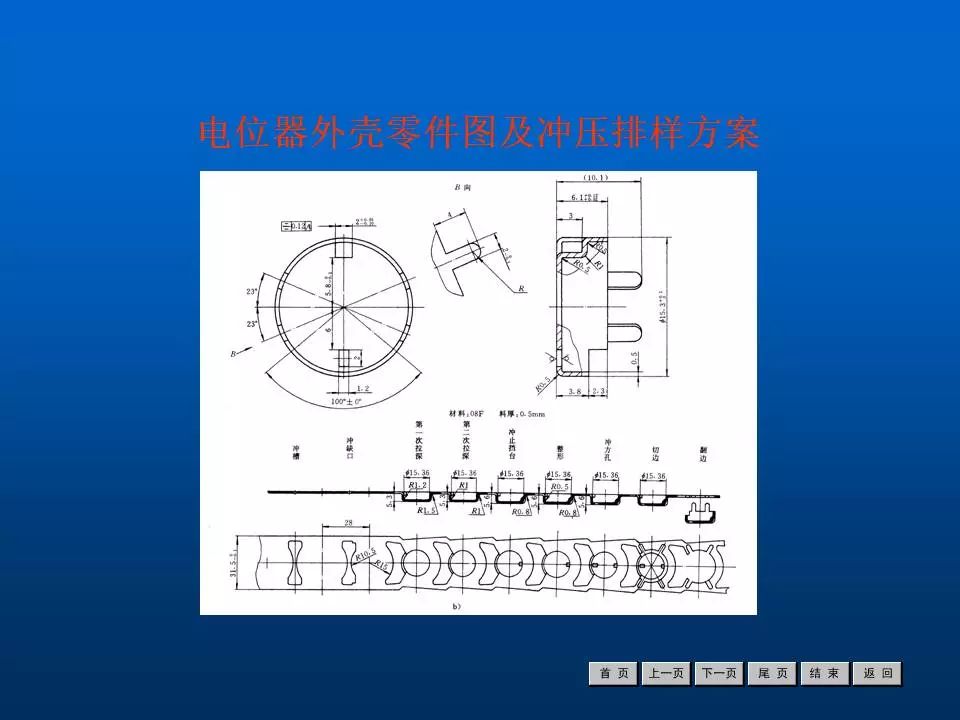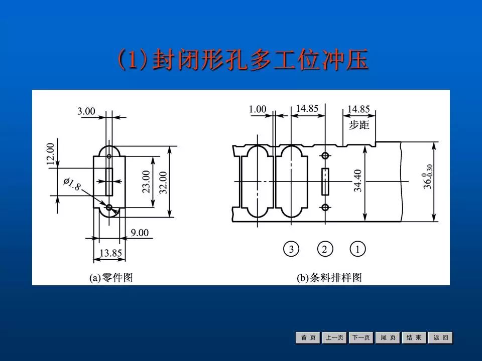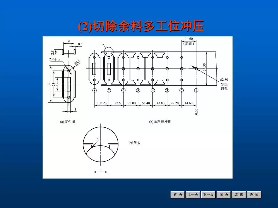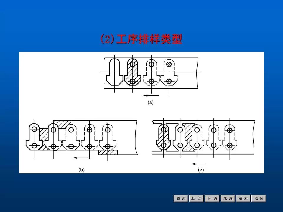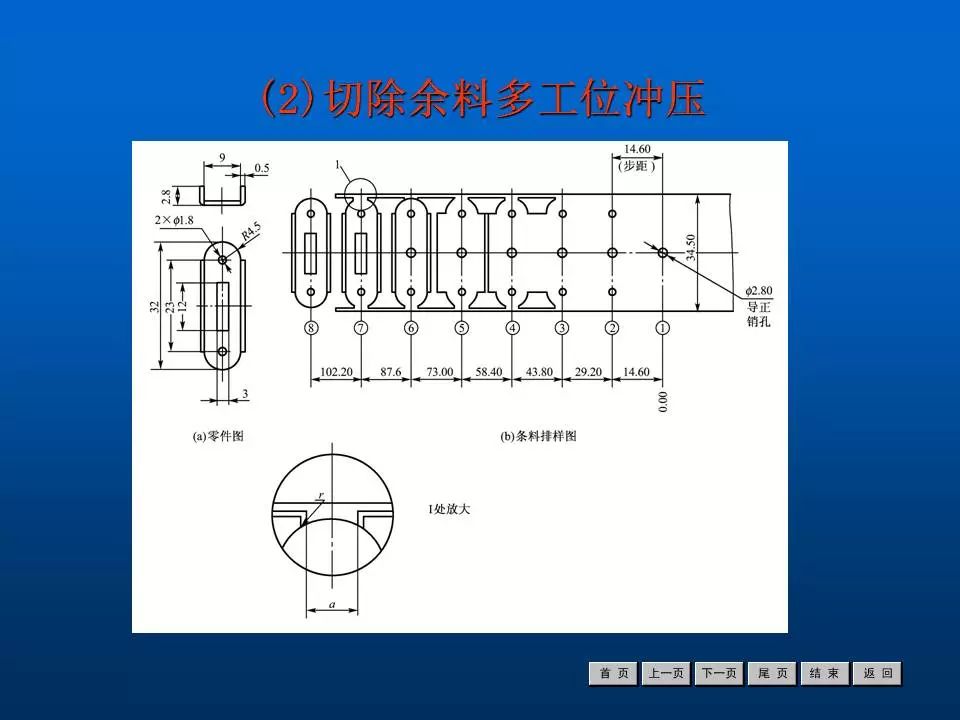 (1) 将冲头迭加图中的冲头及成形工序分布于模具中的适当位置,即为排样图。