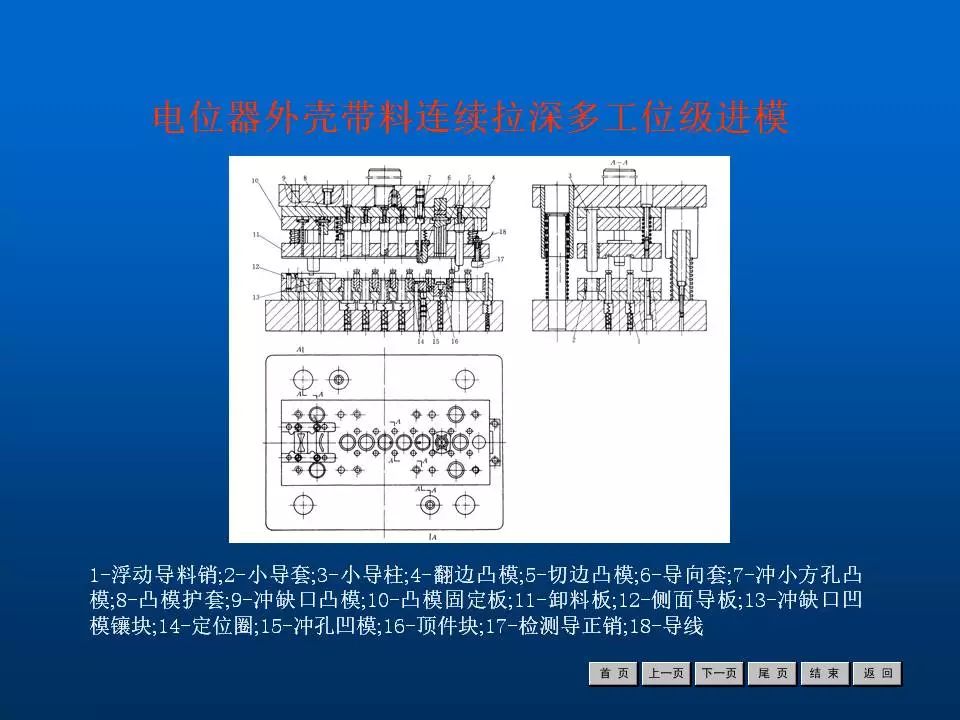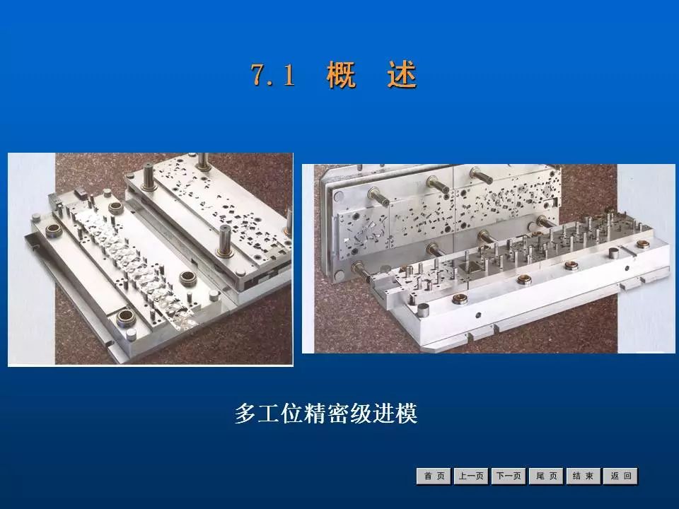(3) 精密连续模具结构的选用 根据产品精度及生产总量,确定模具等级。以模具
