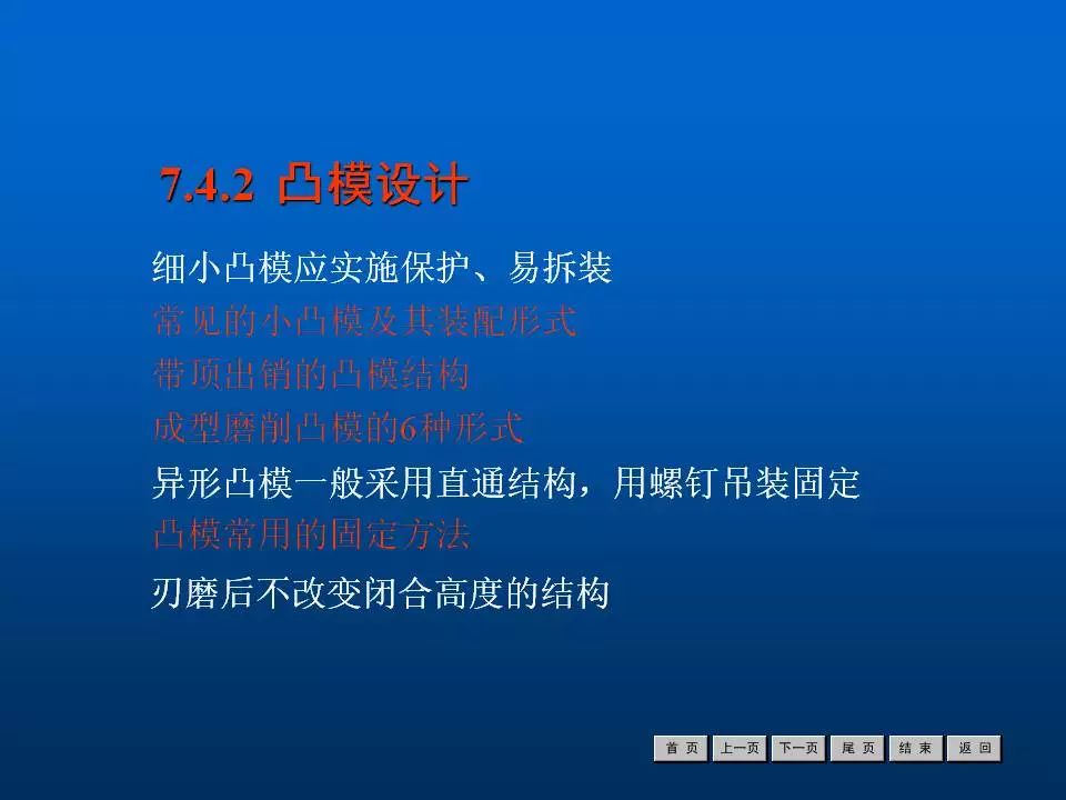 c; 冲头应做防脱料结构,并考虑到加工工艺,尽量利用磨床及线割加工,减少放电加工。