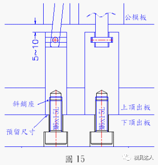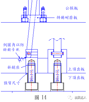 聯接-﹕斜頂加長﹐斜頂縮短(增強剛度)公模不需加耐磨板(如圖15)。