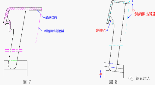 (2)斜頂座底部做斜度b﹐使斜頂延時頂出﹐如圖8