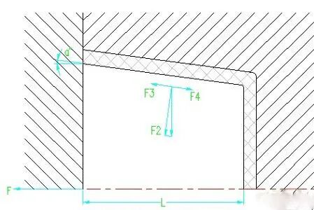 F=F4*cosα -F3cosα =(F4-F3)*cosα 式中 F---抽芯力(N); F3---F2 的侧向分力(N) F4---抽芯阻力(N);