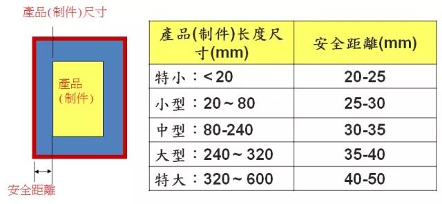 註:模具設計時,會要求設計人員將模仁尺寸取為整數,因此安全距離並非定值;可根據產品(制件)尺寸做調整。