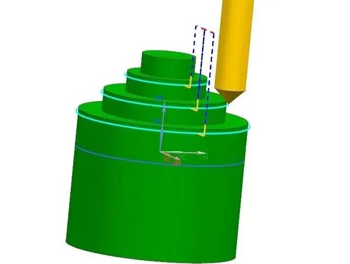 6、以上参数设置完成后,生成刀路就可以得到一条同时做出多台阶的C角的刀轨,如下图所示: